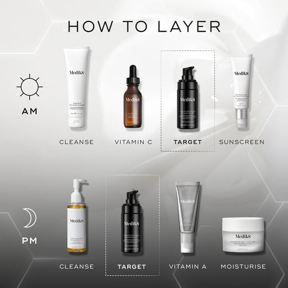 Safety Warning: Avoid eye contact. If product enters eyes, rinse out thoroughly with plenty of clean water. If irritation, redness or itching occurs, cease use. Should irritation persist, consult a doctor. Use only as directed and on unbroken skin. Patch testing prior to use is advised. Refer to medik8.co/patch for an in-depth guide to patch testing.