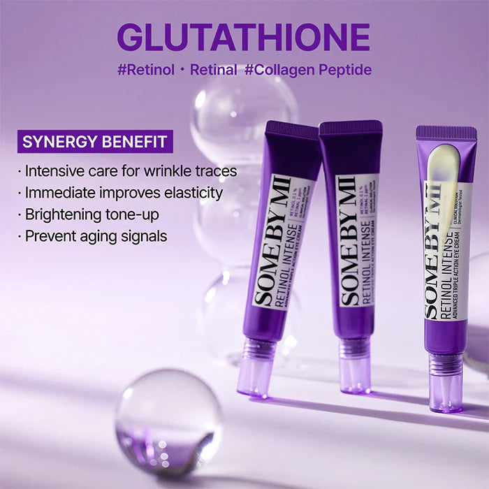 SOME BY MI Retinol Intense Advanced Triple Action Eye Cream is a powerful eye treatment that targets multiple signs of aging, including fine lines, dark circles, and puffiness. Infused with retinol, this eye cream helps to smooth and firm the delicate skin around the eyes, restoring a youthful, bright appearance. The advanced formula also combines nourishing ingredients like peptides and plant extracts to hydrate and protect the skin, offering comprehensive care for tired, aging eyes. Perfect for those looking to rejuvenate and refresh their eye area with visible results.