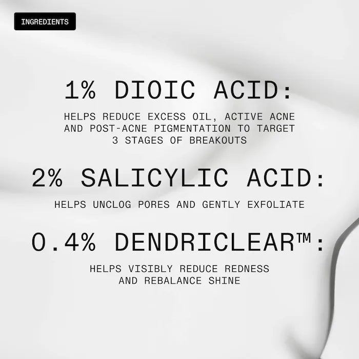 What it is: An all-in-one serum to target excess oil, active blemishes, and post-acne pigmentation with dioic acid, the next-generation ingredient for acne-prone skin.